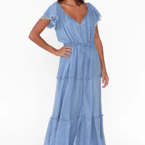 - Breezy, tiered A-line silhouette defined by seam detailing