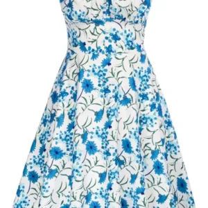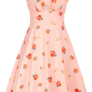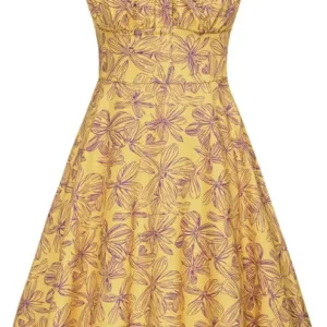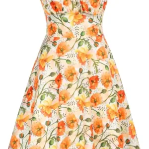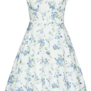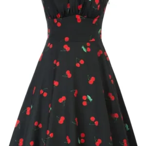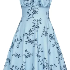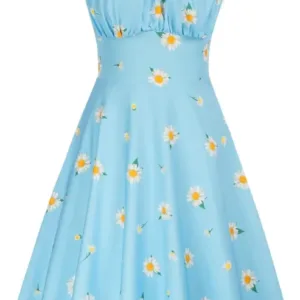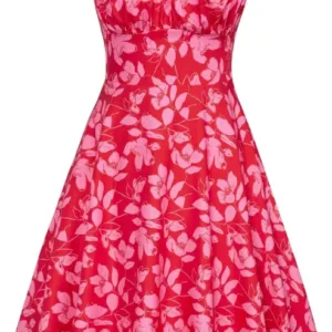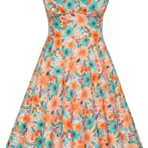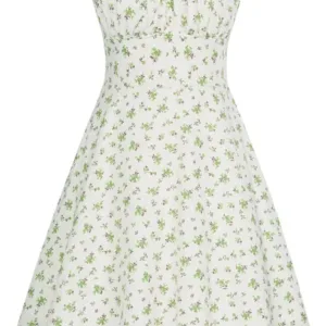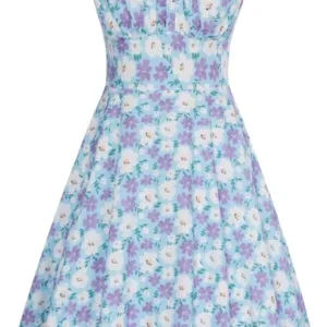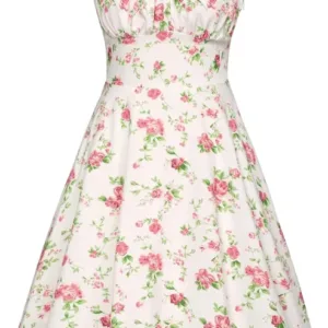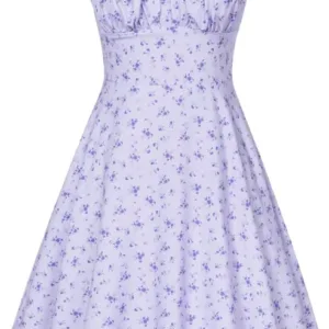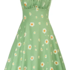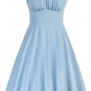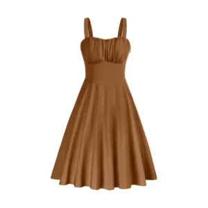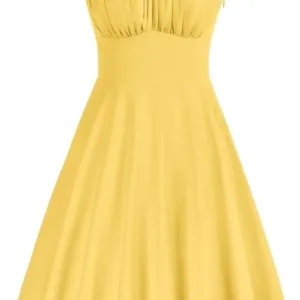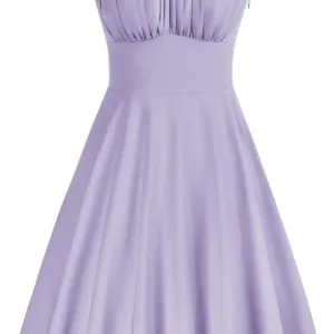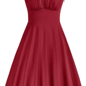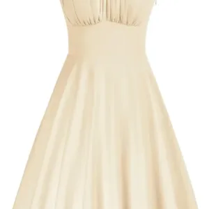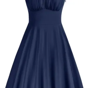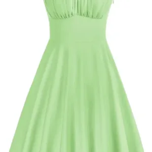 Women’s Vintage Sleeveless Solid Floral Ruched Summer Cute A-Line Flowy Swing Midi Dress