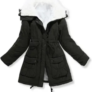 Women’s Winter Mid Length Thick Warm Faux Lamb Wool Lined Jacket Coat