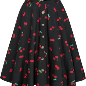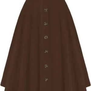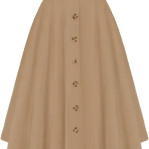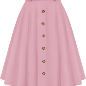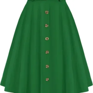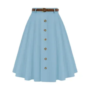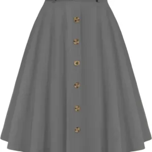 Women’s Vintage Stretch High Waist A-Line Flared Midi Skirts with Pockets & Belts